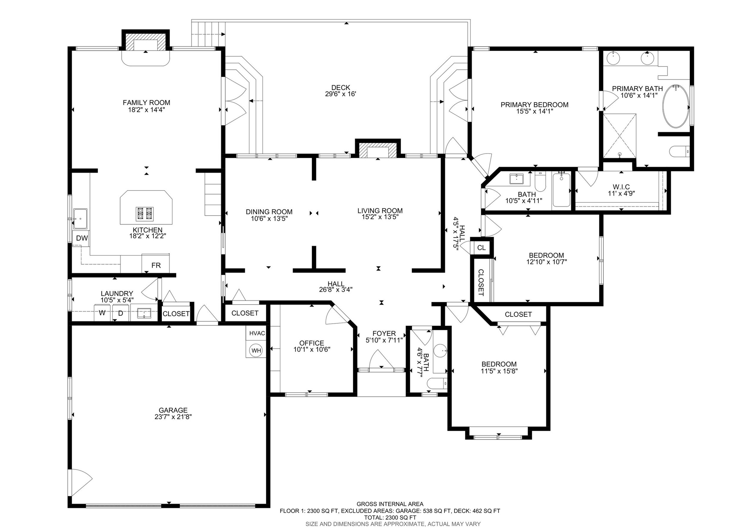 3 bedrooms, Den, 2.5 bath, 2,300 SQFT.